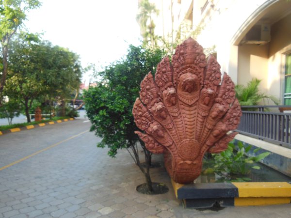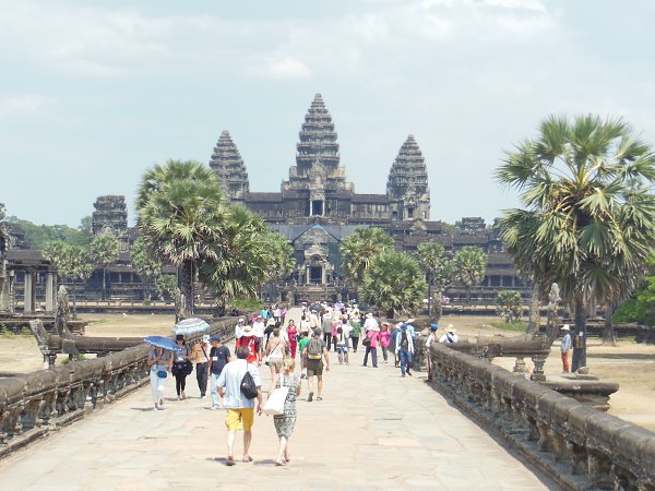 в столицу Кхмерских королей - Ангкор -Тхом. Аллея, ведущая в эти ворота, считается священной: справа 27 гигантов со спокойными лицами, слева - 27 фигур с лицами, искаженными гневом. И те, и другие держат в руках громадные змеиные тела - это священная змея, помогавшая Богам добыть эликсир счастья со дна Великого молочного моря. В районе Ангкора осталось множество древних городов, воздвигнутых разными королями. Начиная с 9 века, почти каждый король заново строил город с храмом посередине, и стр