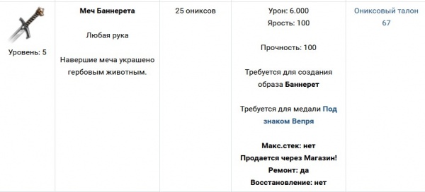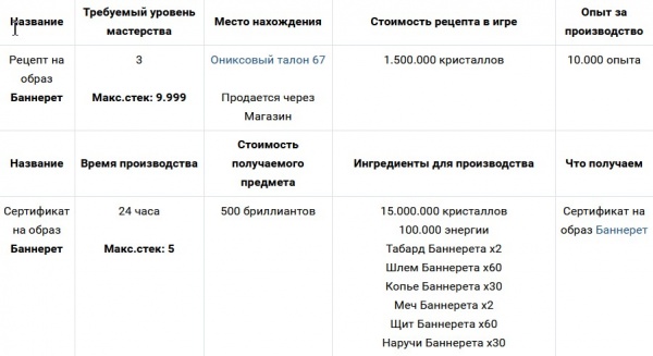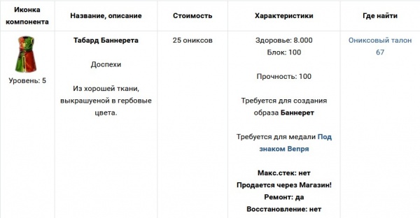 Награда за получение образа Баннерет