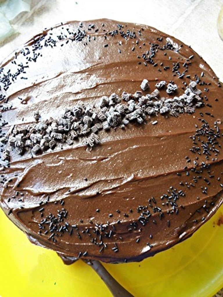 Покрыть торт глазурью со всех сторон и убрать в холодильник на полчасика.