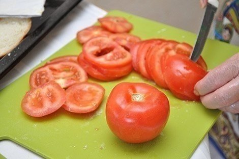 3. Помидоры помыть и порезать кружочками.