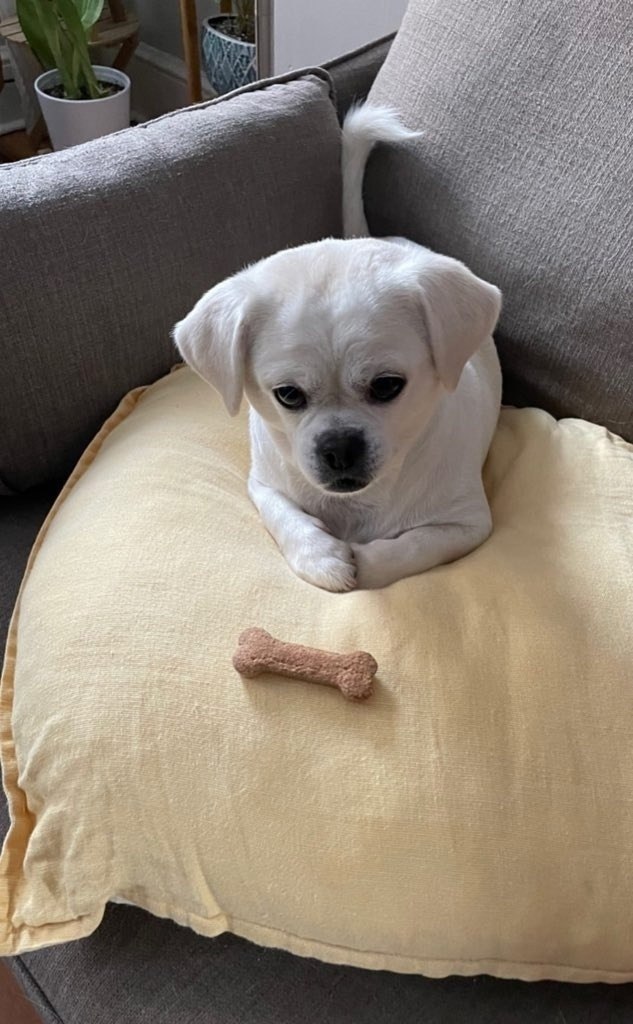 Он принёс свою косточку на подушку и стал ей любоваться