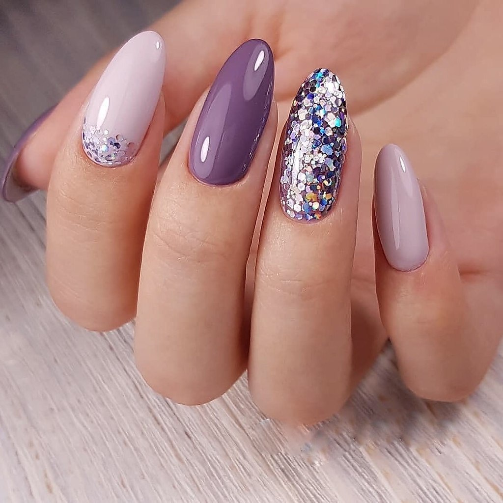 Маникюр в оттенках розового с глиттером