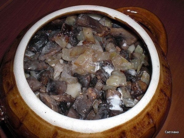 3. Сметану развести с водичкой и вылить в горшок. 4. Воды налить на 3/4 горшка.Ещё не много посолить.