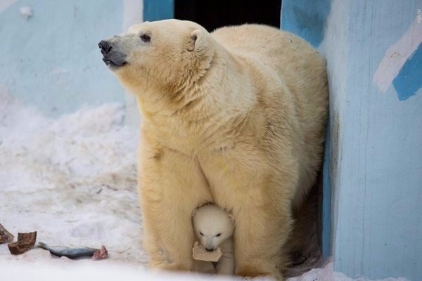 Медведица Герда из Новосибирского зоопарка вывела своего малыша на первую прогулку