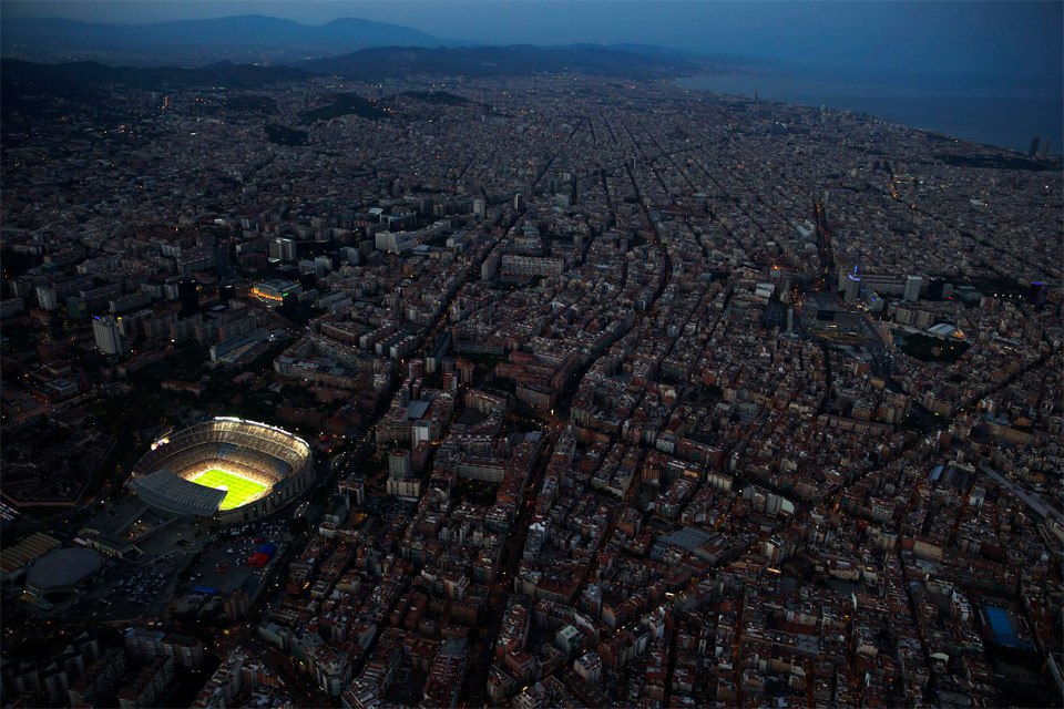 Барселона в момент когда играет её футбольный клуб