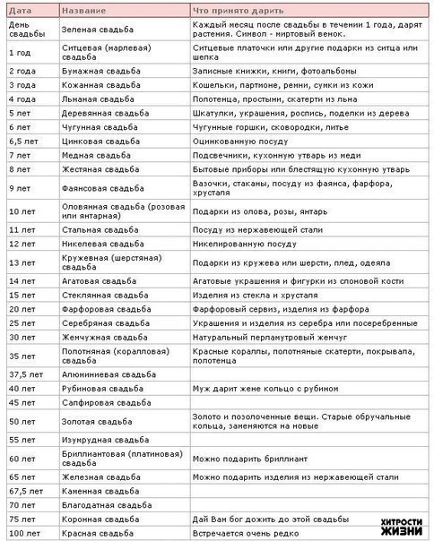 Что принято дарить на годовщины свадеб